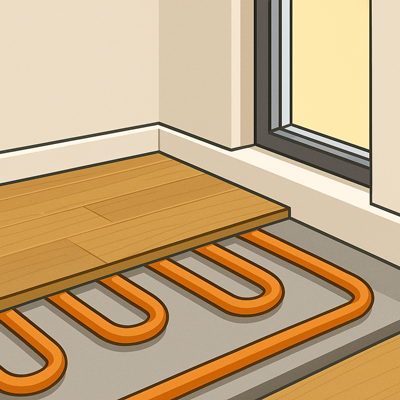 Încălzirea în pardoseală se găsește în toate locuințele, iar peste acest sistem de ultimă generație se va instala parchet, noua generație a pardoselilor impermeabile, un produs realizat din materii prime minerale, cu o stabilitate dimensională excelentă.